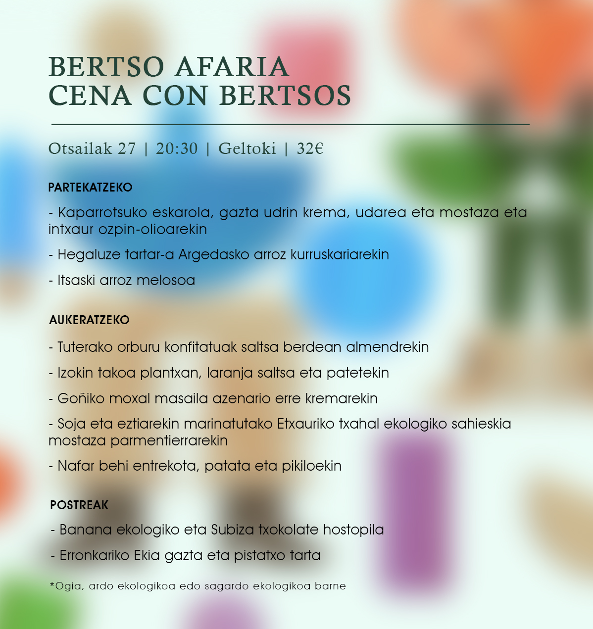 Bertsolariak: Eneko Lazkoz, Nerea Elustondo, Xabat Ilarregi, Miren Artetxe.