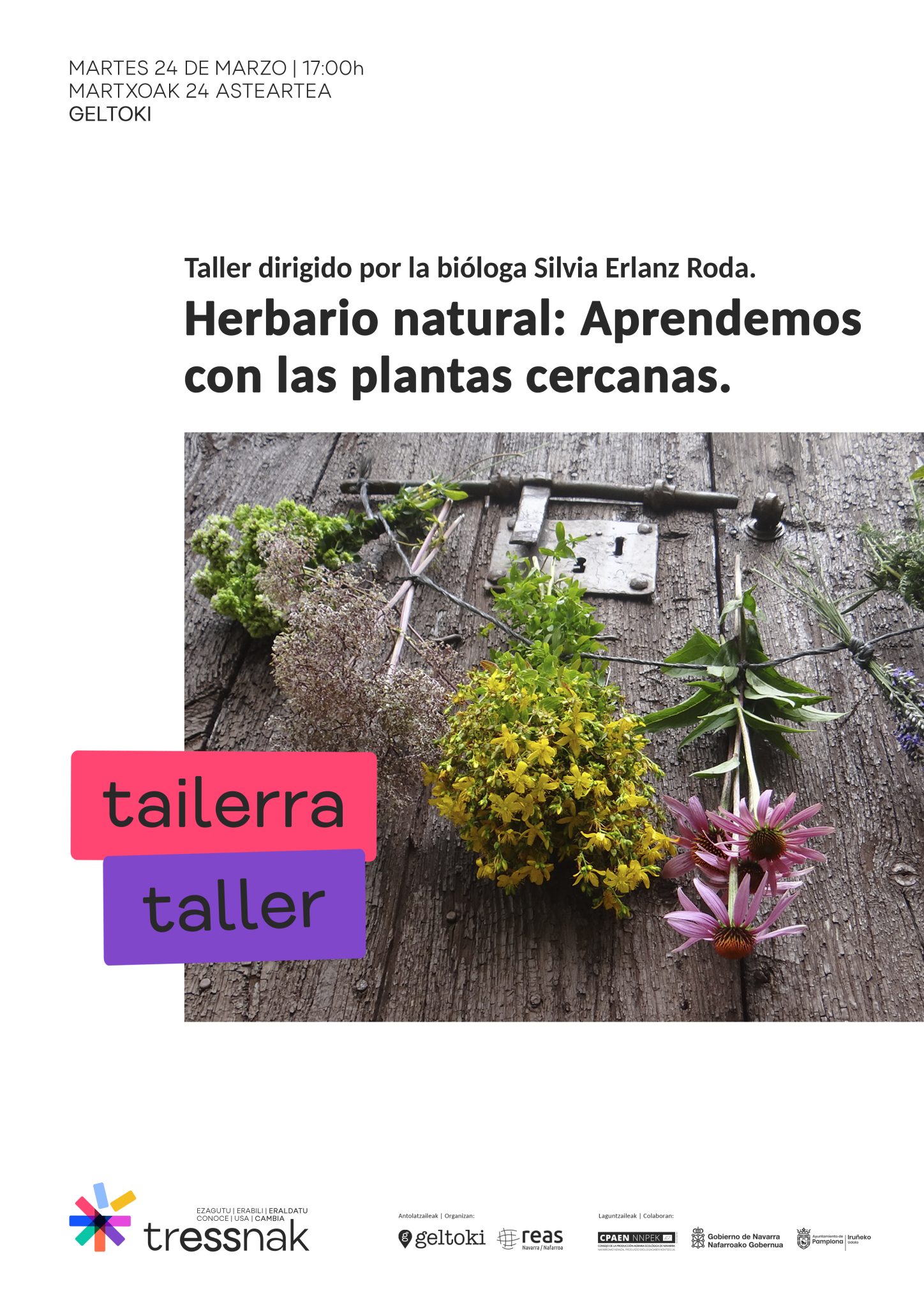 Este taller, cofinanciado por CPAEN-NNPEK, está dirigido por la bióloga Silvia Erlanz Roda, de Gentiana Pirineo, quien compartirá su experiencia y conocimientos para guiarnos en una experiencia formativa y vivencial.